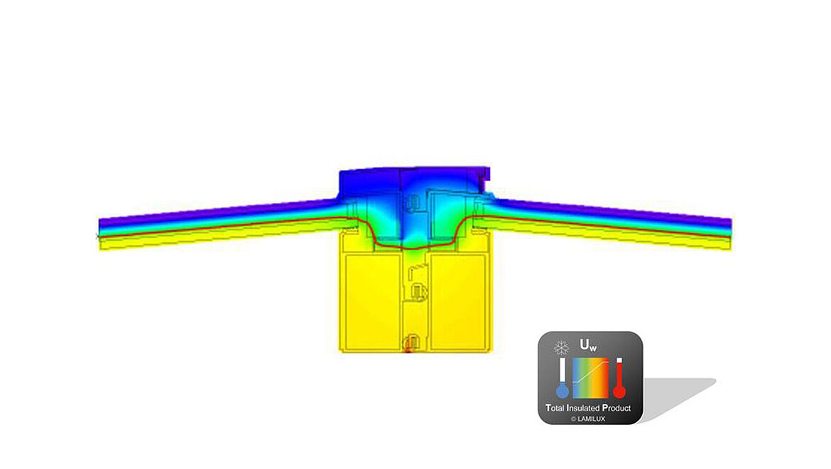 Çepeçevre en az olan 55 mm kalınlığında olan izolasyon, 0,6 W/m²K değerinde mükemmel bir ısı geçirme katsayısı sağlar. Bordür alt tarafında 40 cm yüksektir ve üst tarafta 3° eğimle 55 cm’ye yükselir. Böylece elemanın kendi kendine temizlemesi desteklenir.